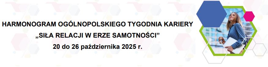 Zapraszamy do udziału w XVII Ogólnopolskim Tygodniu Kariery (OTK). W tym roku OTK trwa od 20 do 26 października. Tegoroczne hasło przewodnie to "Siła relacji w erze samotności".